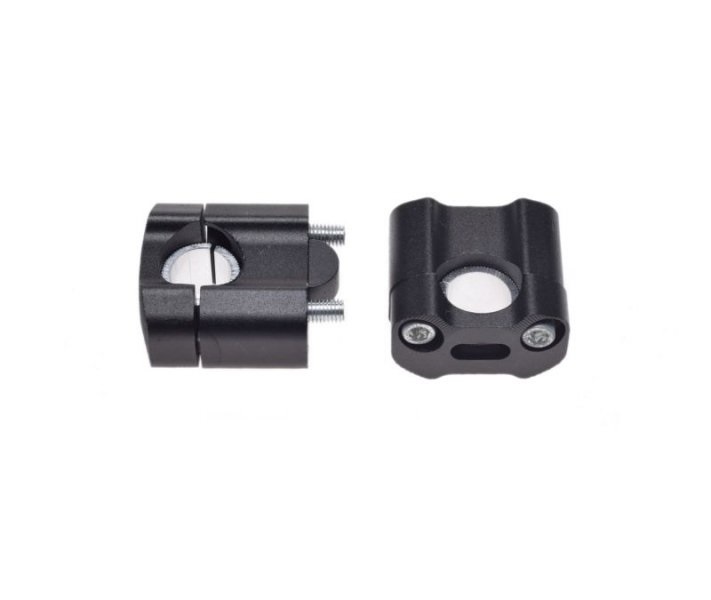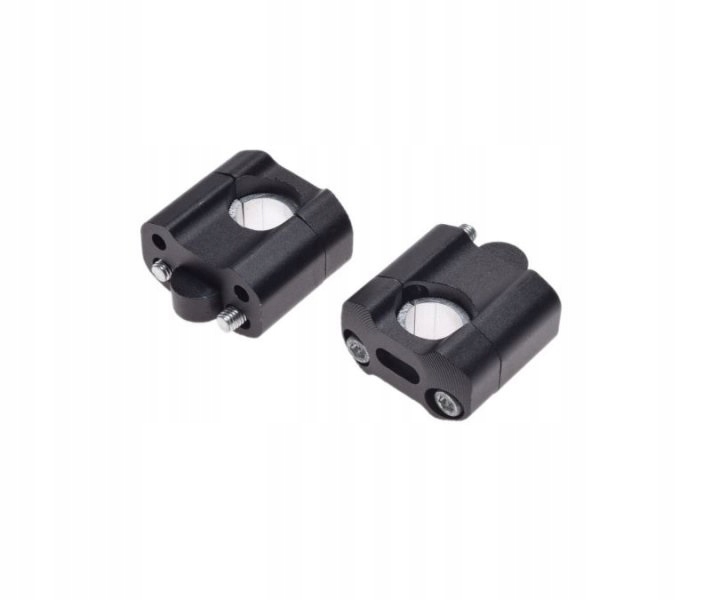 Uniwersalny zestaw podwyższający kierownicę, umożliwiający montaż w różnych wariacjach, dostosowanych do naszych potrzeb, dzięki ząbkowanym przejściówkom. Dzięki temu możemy założyć je na kierownicę calową, kierownicę 22mm, albo zmienić grubość kierownicy z 22mm na calową, lub na odwrót.